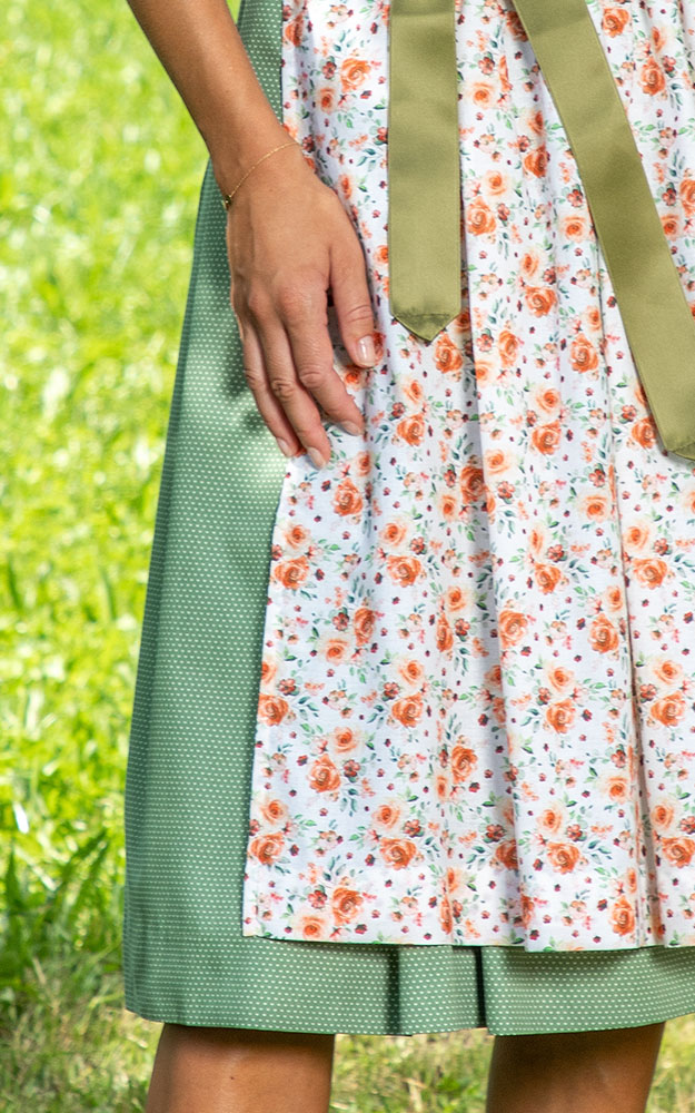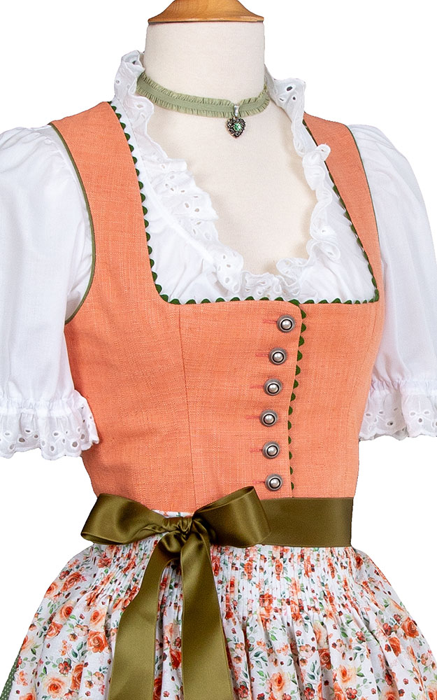 Blusendirndl Ahrtal mandarine/oliv, mit Schürze