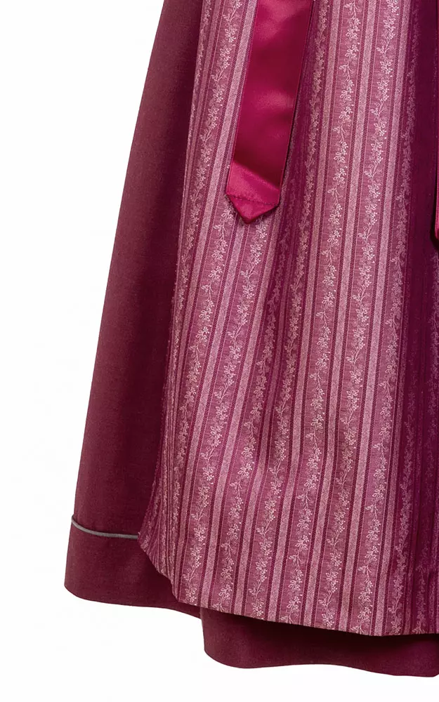 Bitte beachten Sie, dass Dirndlkleider auf Figur gearbeitet sind und eng sitzen müssen. Gegenüber modischer Kleidung fallen sie daher eher klein aus. Bitte beachten Sie deshalb unsere Maßtabelle. Die Seitennähte unserer Modelle sind so versäubert, dass Sie leicht um bis zu eine Konfektionsgröße enger oder weiter gemacht werden können.