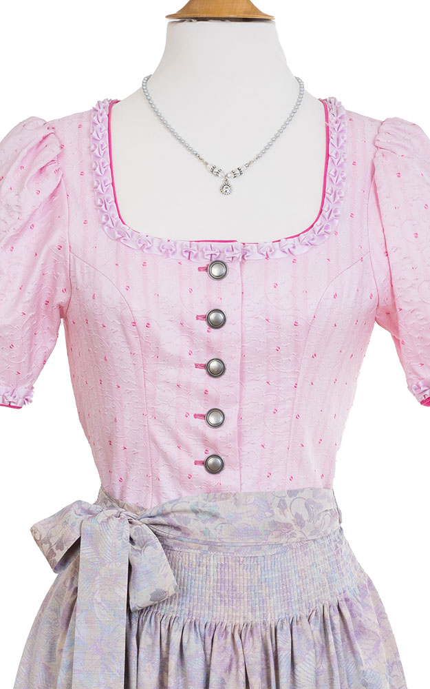 Bitte beachten Sie, dass Dirndlkleider auf Figur gearbeitet sind und eng sitzen müssen. Gegenüber modischer Kleidung fallen sie daher eher klein aus. Bitte beachten Sie deshalb unsere Maßtabelle. Die Seitennähte unserer Modelle sind so versäubert, dass Sie leicht um bis zu eine Konfektionsgröße enger oder weiter gemacht werden können.