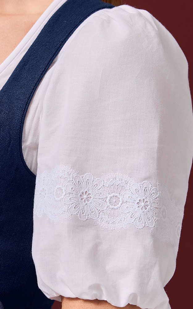 Feine Bluse mit aufwändiger Stickerei an den Ärmeln.