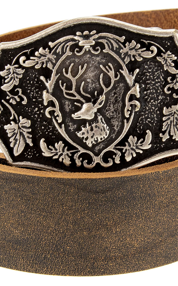 Mittelbraun-melierter Herrengürtel mit silberfarbener Schnalle.