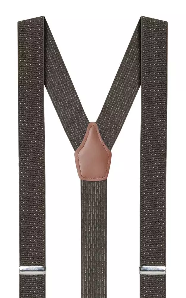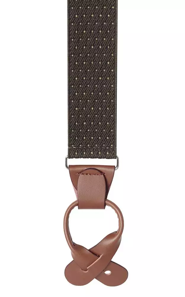 Elastischer Hosenträger zu Ihrer Stresemann-Hose in Olivgrün/Braun zum Knöpfen mit Lederrückenteil und Lederbiese.