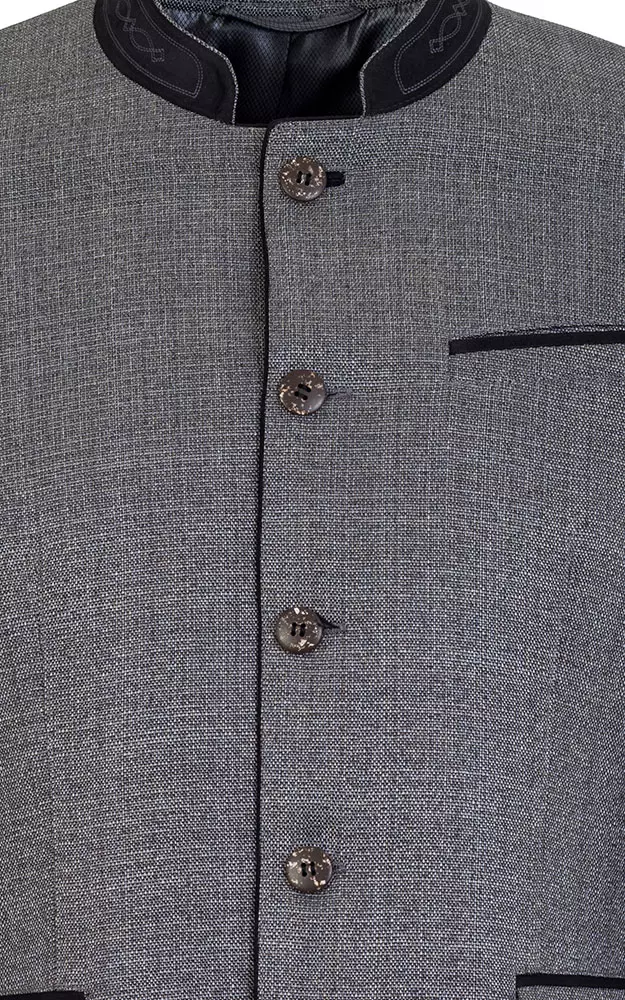 Fescher Janker aus Struktur-Material (4 Innentaschen) mit besticktem Kragen und Kanten-Einfassung.