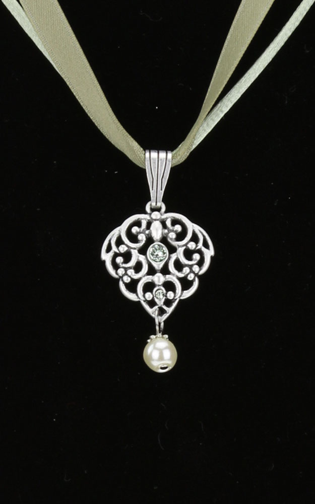 Trachten-Collier aus zwei glänzenden Satin-Schnüren mit einem antik-versilbertem Metall-Anhänger.