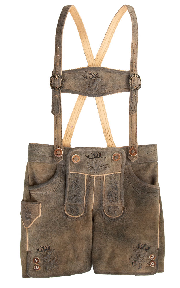 ACHTUNG: Bis Größe 116 wird die Kinderlederhose mir Stegträger geliefert, ab Größe 128 mit Gürtel.