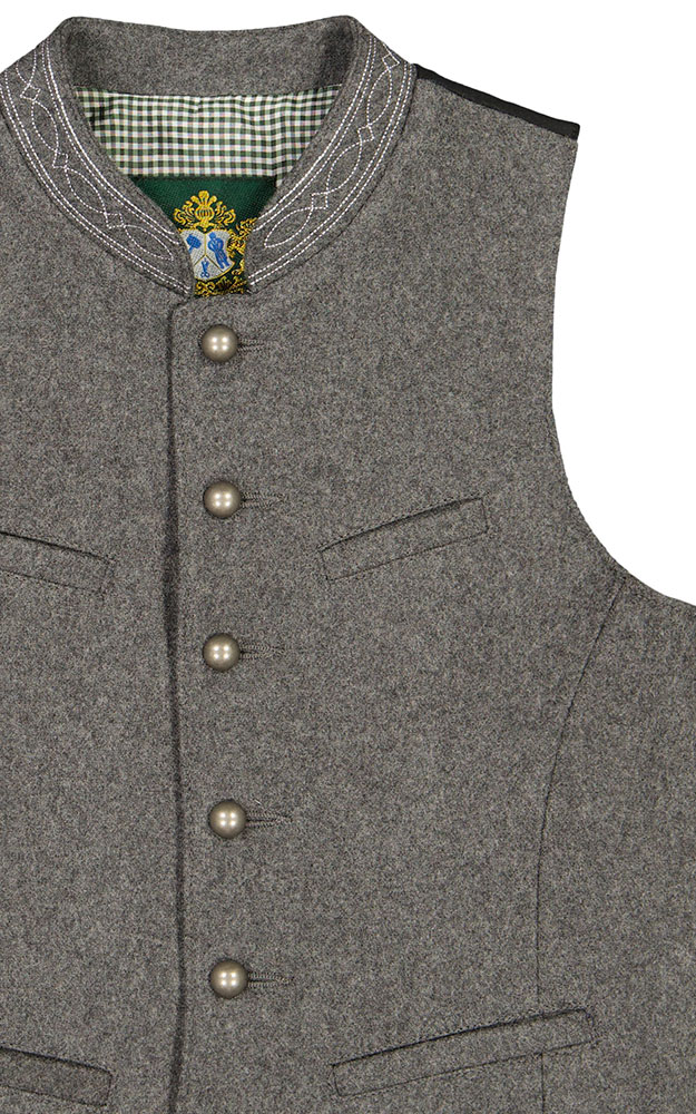 Klassisch schlichte Lodenweste mit Stoffrücken und Rückenspange.