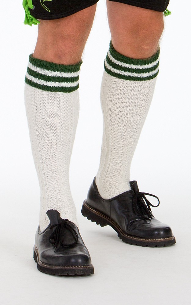 Dieser hochwertige handgekettelte Kniestrumpf überzeugt durch 90% Merinoschurwolle mit Superwashausrüstung. Das Besondere sind die beiden handgezogenen Zöpfe, hierdurch kommt das Zopfmuster beim Tragen wesentlich besser zur Geltung und verleiht dem Strumpf seinen unnachahmlichen Charakter. Fein auf die Tracht abgestimmte Ringel im Bund vervollständigen die Optik. Die Fersen und Spitzen sind verstärkt und sorgen für eine lange Haltbarkeit.