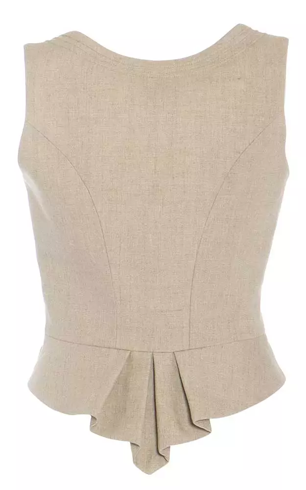 Klassisches Leinenmieder mit Schnurstepperei. Runder Ausschnitt, silberfarbene Knöpfe. Komplett gefüttert.