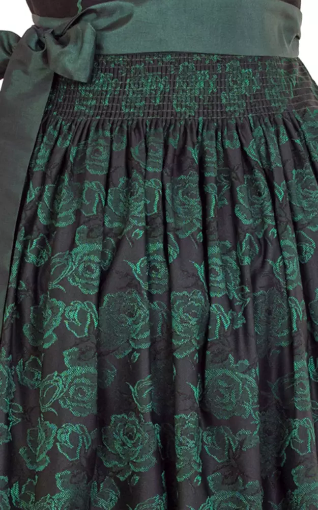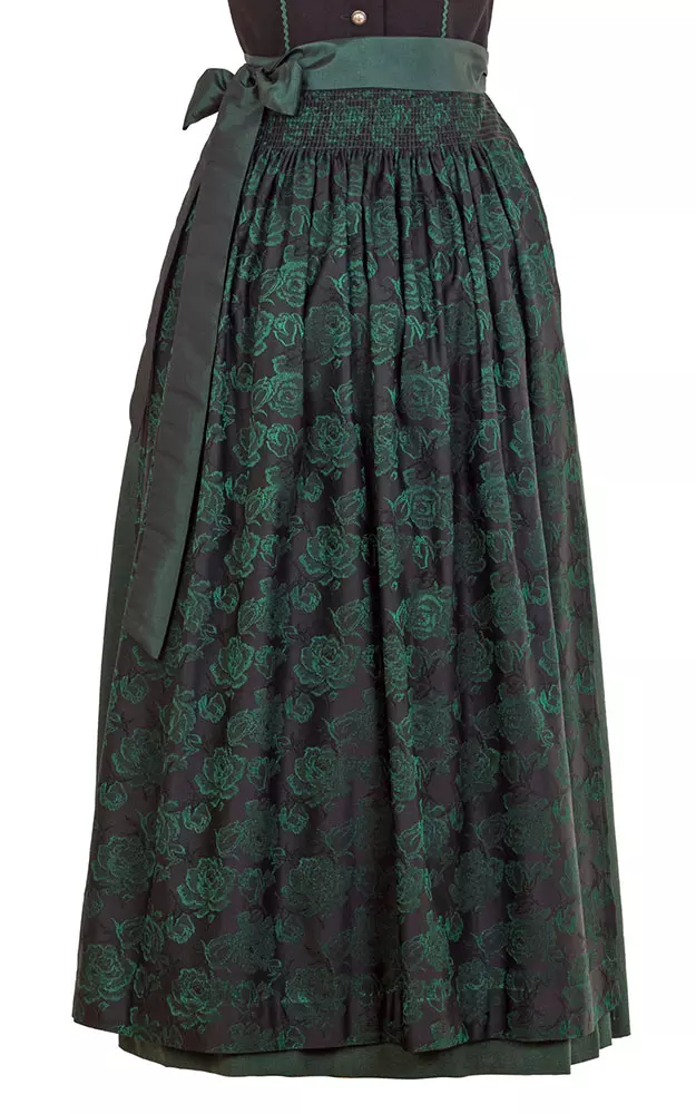 Schürze aus edlem Jacquard mit Rosenmuster und Satin-Schürzenbändern.