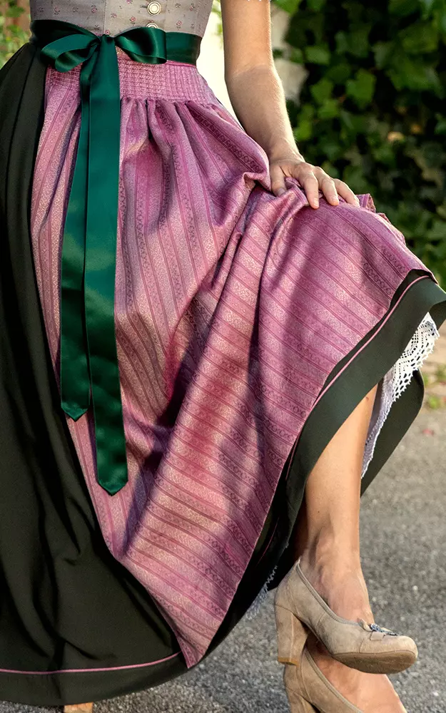 Seidig schimmernde Jacquardschürze passend zu Rocklänge 90cm.