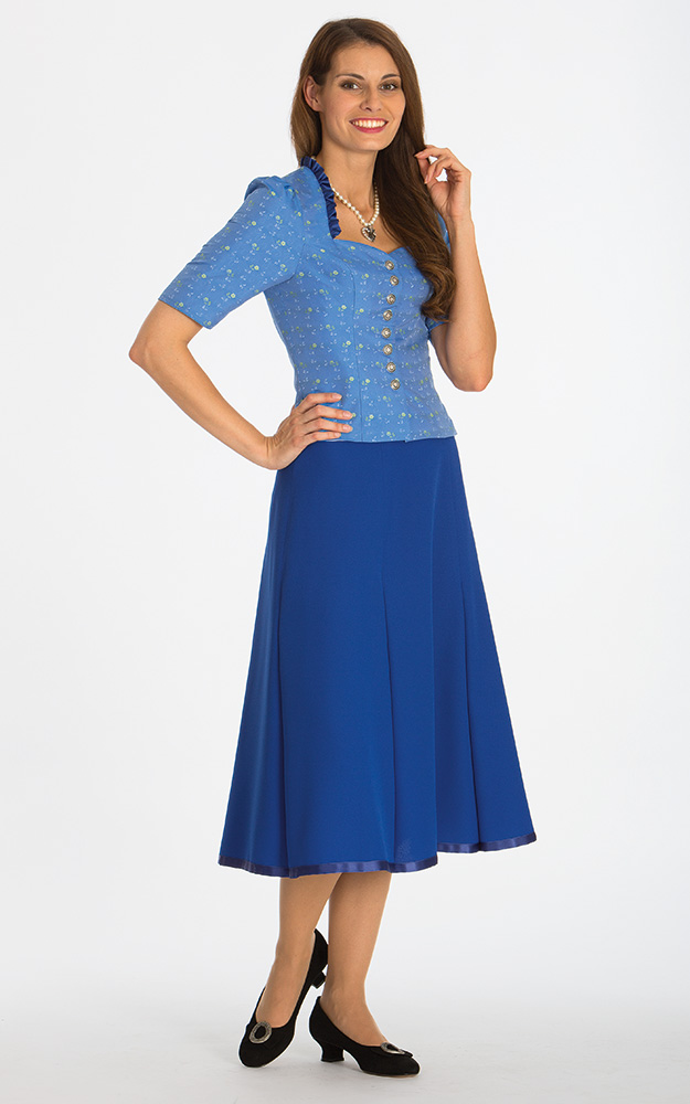 Schlankfallender 6-Bahnen-Rock mit Formbund und Satinbandzier am Saum. Weitere oben abgebildete Artikel sind nicht im Preis enthalten.