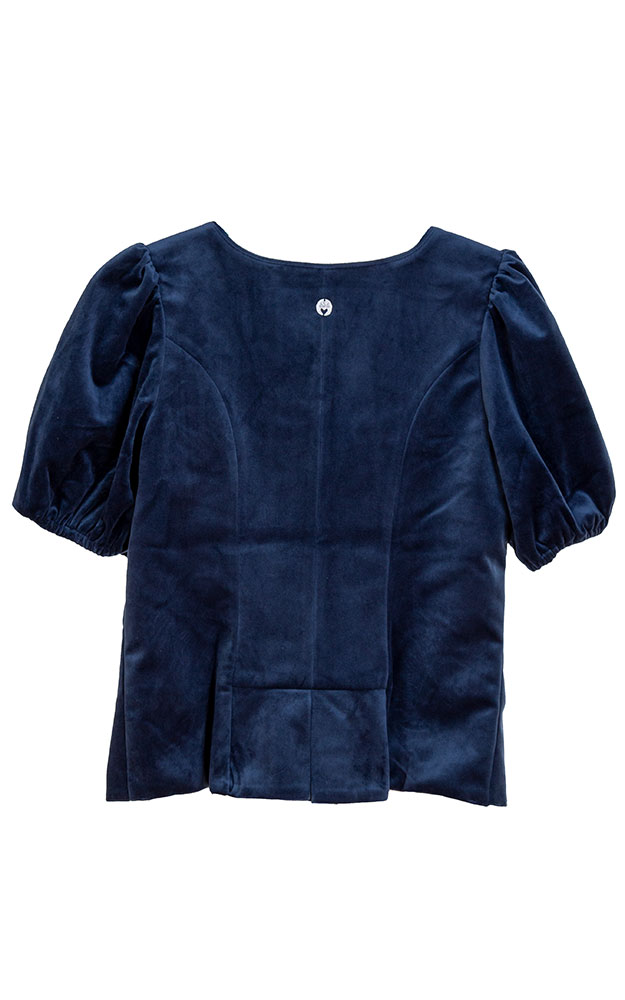 Klassisches, herzförmig ausgeschnittenes Mieder aus super weichem Samt. Komplett gefüttert, Paspel im Ausschnitt, hochwertige Knöpfe, elastische Bündchen und kleinem Schößchen am Rücken.