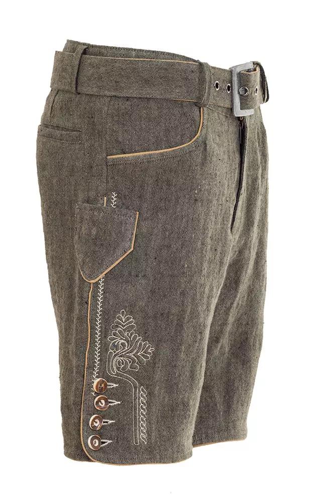 Bequeme und luftige Leinenbermuda im Lederhosenlook.