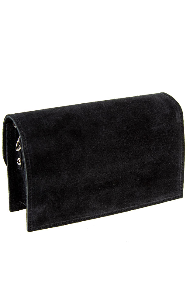 Schlichte Tasche aus Rinderveloursleder, zum Umhängen mit abnehmbaren Riemen und Magnetverschluss.