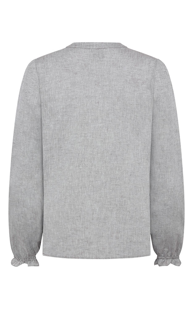 Diese lange Bluse aus einer hochwertigen Leinenmischung vereint Komfort und Eleganz. Das Vorderteil ist mit feinen Biesen verziert, die dem Design eine stilvolle Struktur verleihen, während ein kleiner geknöpfter Schlitz vorne einen charmanten Akzent setzt. Der weite Schnitt und der runde Ausschnitt sorgen für ein angenehmes Tragegefühl und eine lässige Silhouette. Die langen Ärmel mit Gummizug-Abschluss bieten zusätzlichen Komfort und runden das durchdachte Design ab. Perfekt für sommerliche Tage oder als vielseitiges Layering-Piece für elegante und legere Outfits.